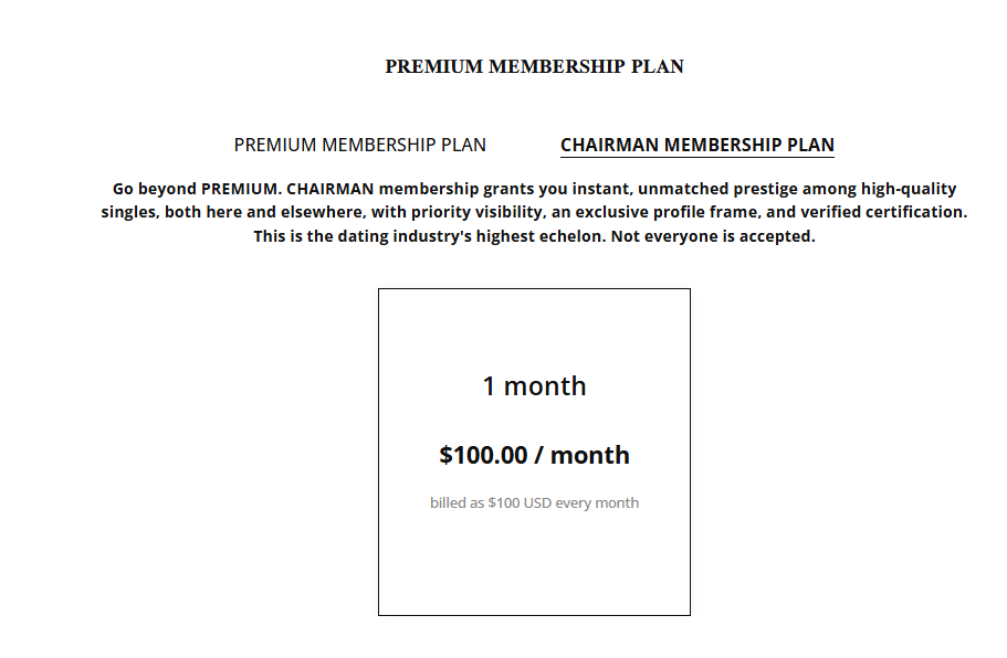 The Chairman Membership is also available at $100 per month through the Google Play Store, offering the most exclusive SeniorMatch experience.