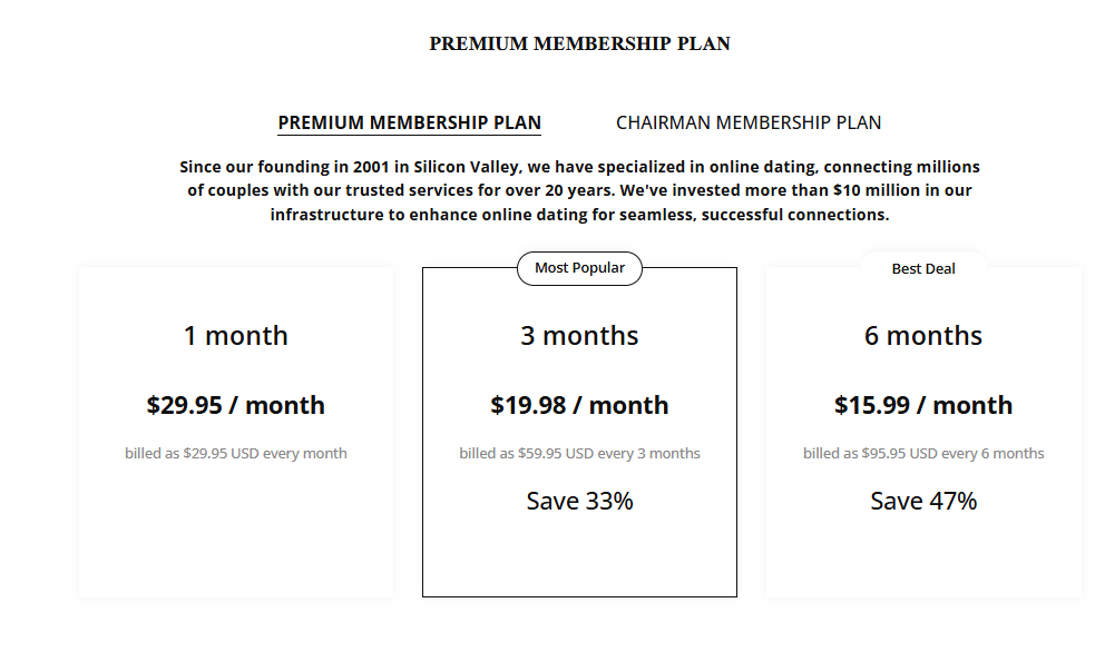 Compare Premium and Chairman options to find the best features and value for seniors looking for genuine connections.
